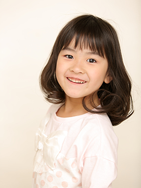 毛先にカールを出すことで子供の元気のよさと、女の子の可愛らしさがアップするスタイルです。
